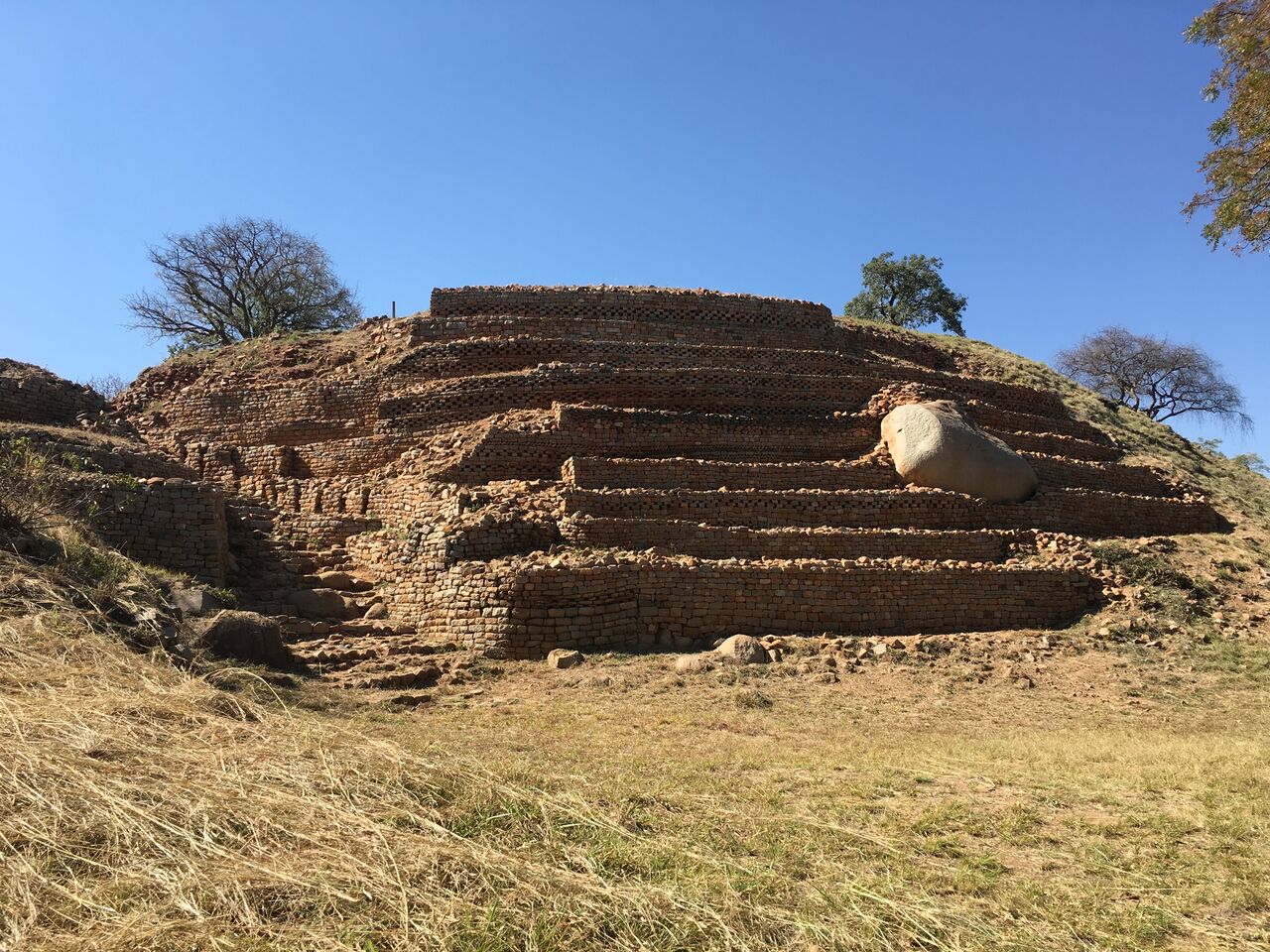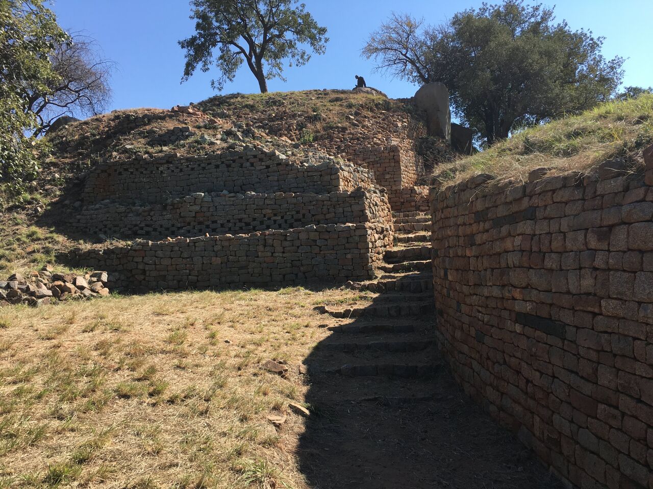 ジンバブエは現地語のショナ語で 石の国 という意味らしいけど、その語源になった石でつくられた遺跡だった。エジプトが自分の写真を撮りまくってくれたので、ありがたいことに遺跡のみの写真が全然ない。