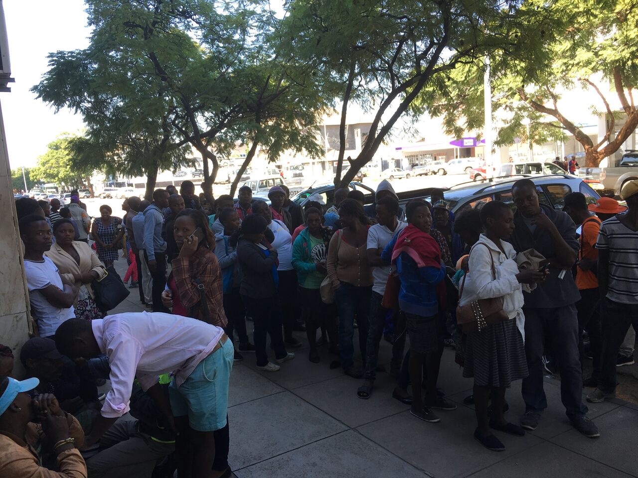 地元民は数時間並んで窓口で手続きすることによりお金が降ろせるそうだ。そこら中にある行列はぜんぶそれだった。銀行の前はどこもこういう感じ。外国人は並んでも無駄です。