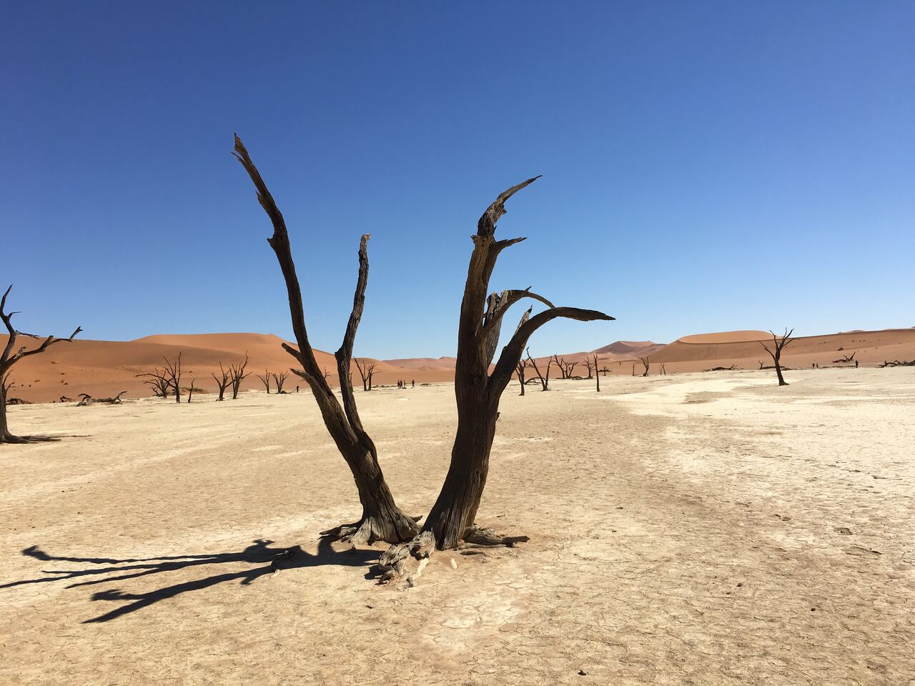900年前に枯れたオアシス、枯れ木と砂丘のコントラストが不思議な感じだ。