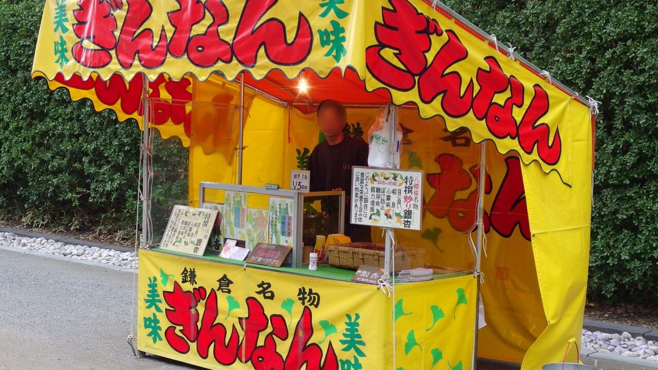 炒ったぎんなんの屋台が出ていました。