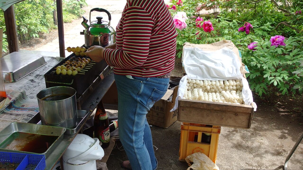 亀岡文殊のお土産店で団子食べてきた。