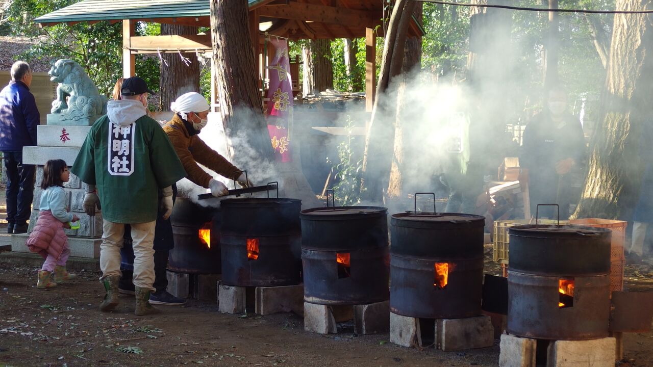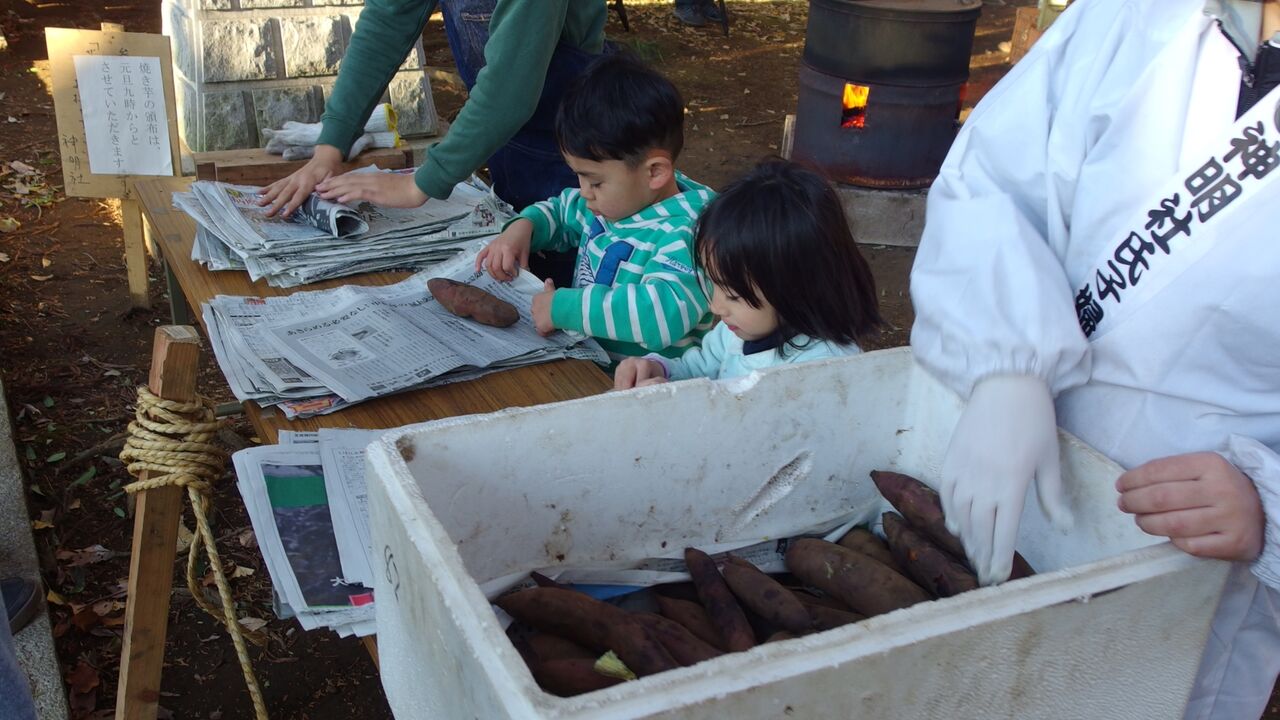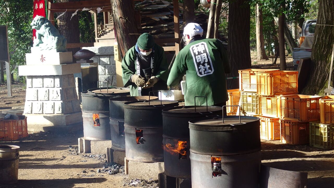 毎年正月にドラム缶で焼いた焼き芋が無料で振舞われます。