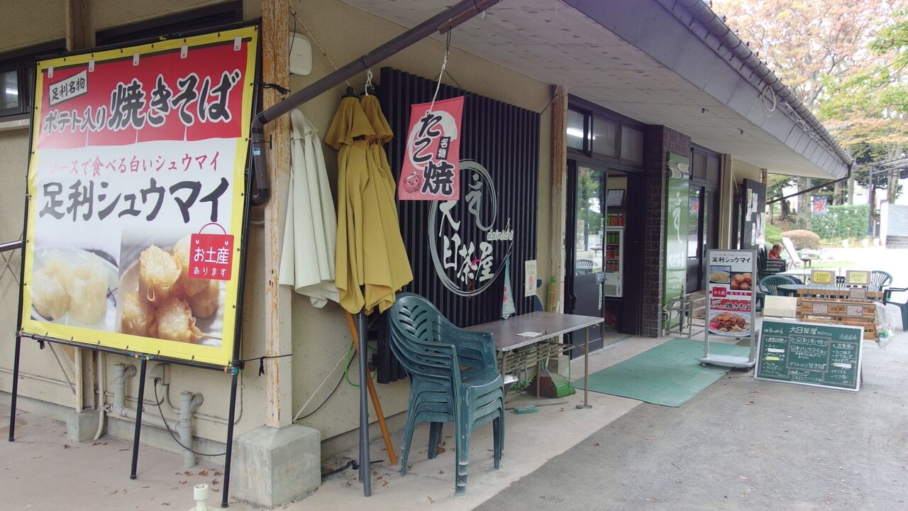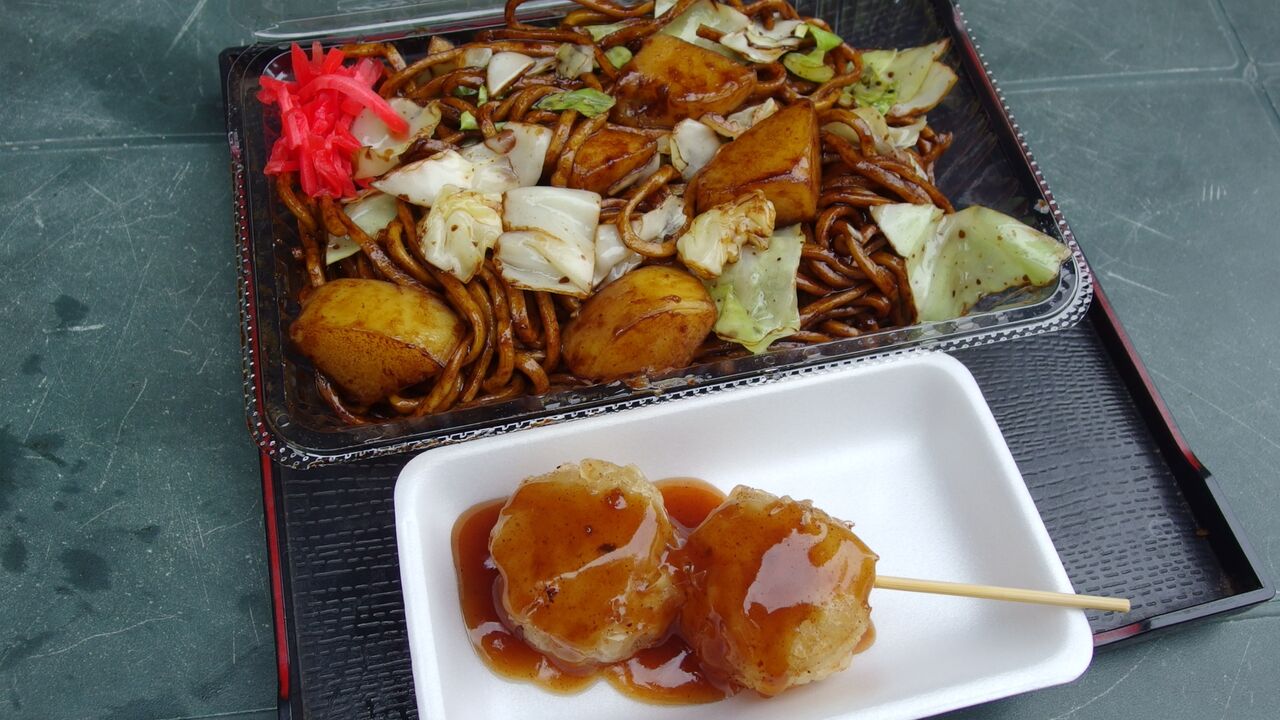 境内の大日茶屋で ポテト入り焼きそば と 足利シュウマイ