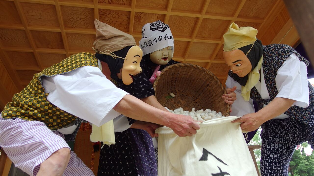 養蚕の舞という珍しい舞が舞われるお祭り。