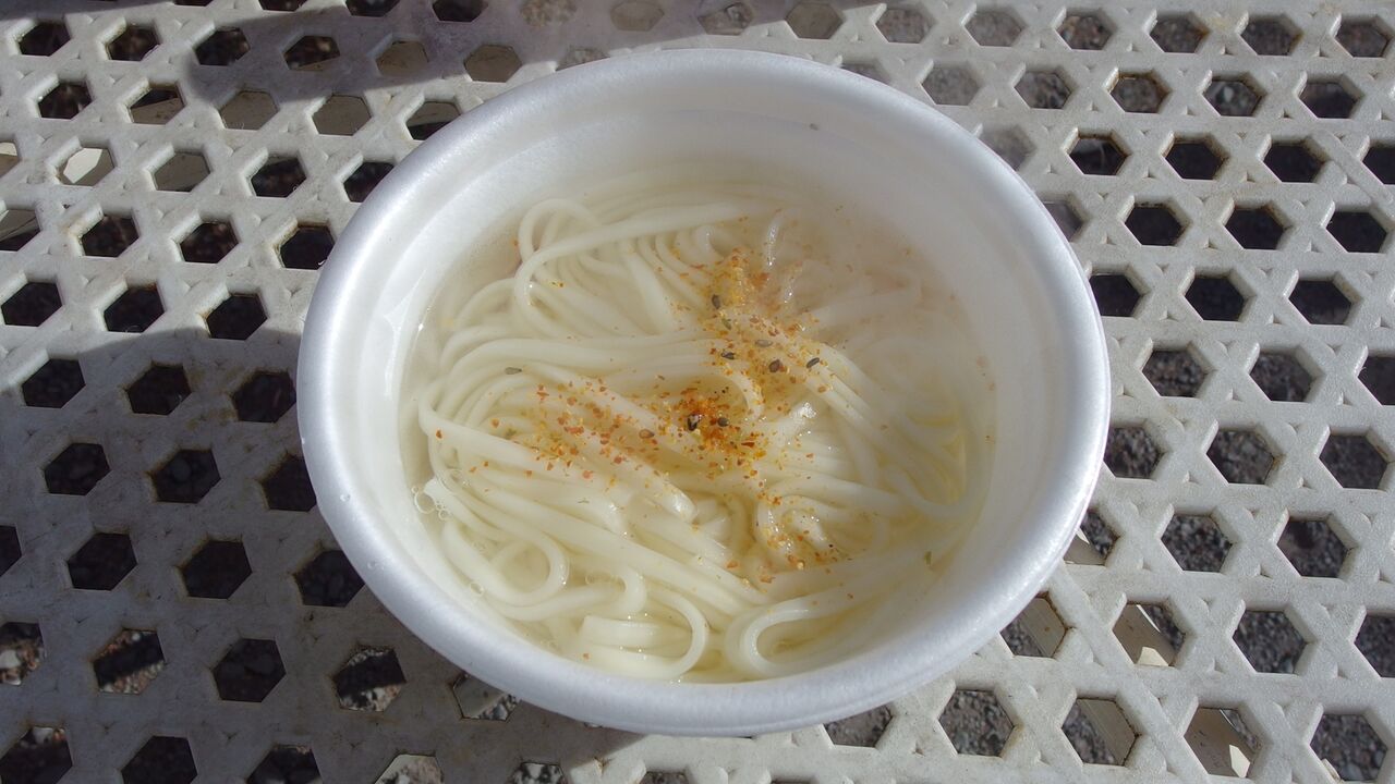 そこに.うどんとゆで汁を注いで
