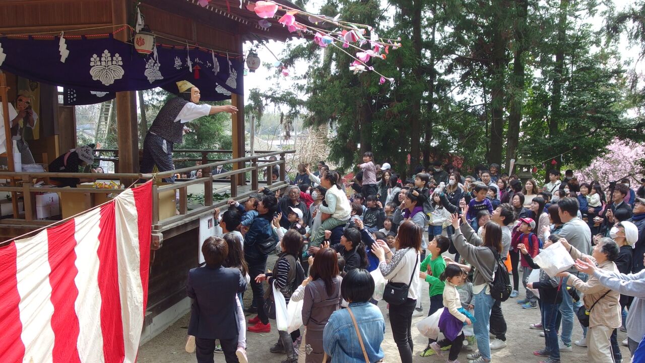 今まで参加した豆まき的なイベントでは一番景気のいい撒き方だった。