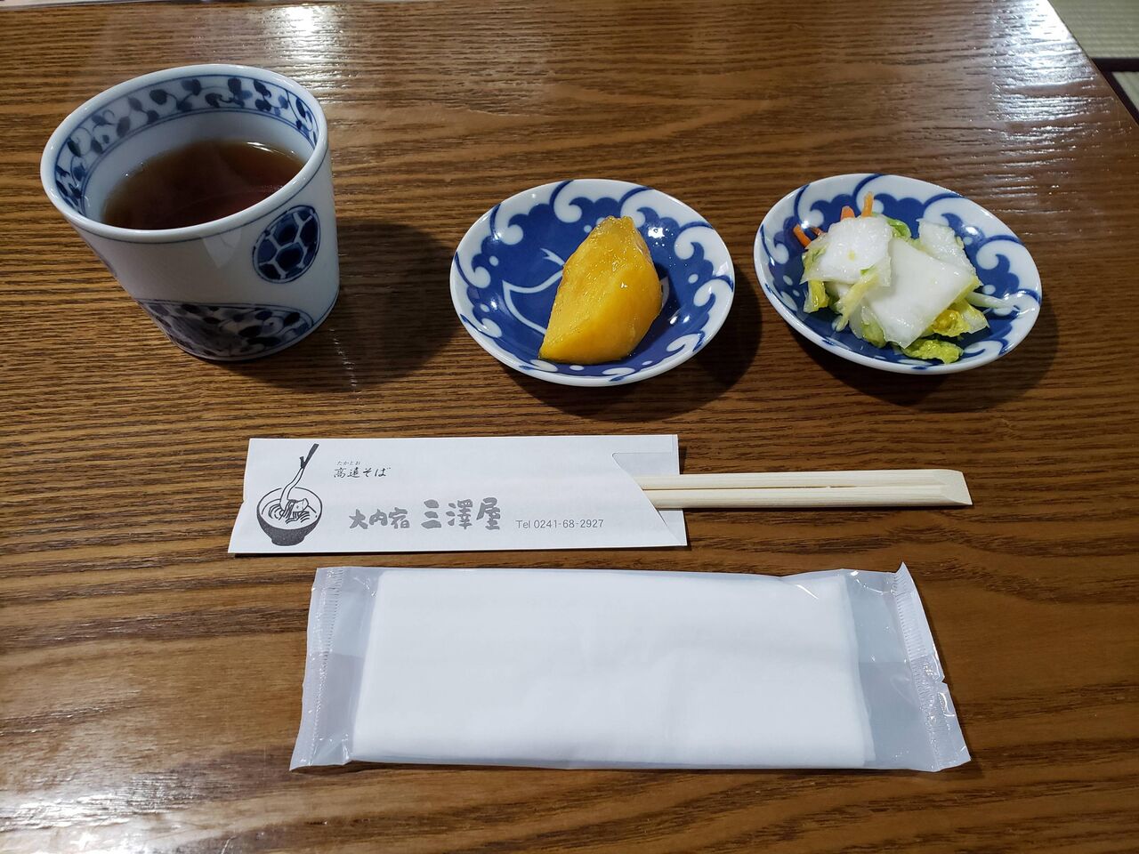 大内宿で山菜の漬物とか色々試食させてもらったけどどれもクッソ美味かった