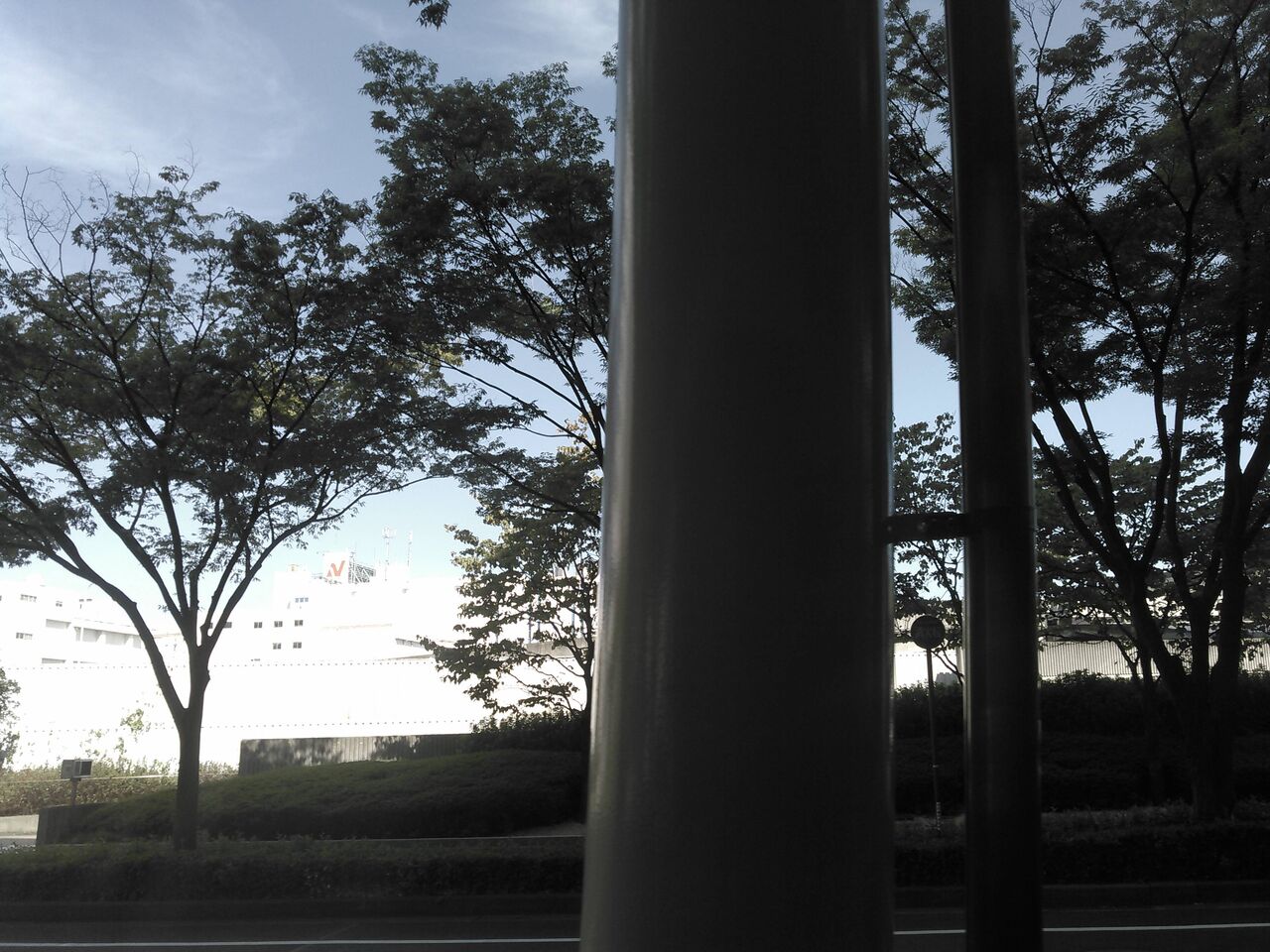 電柱が傾いて写るのが不思議だ