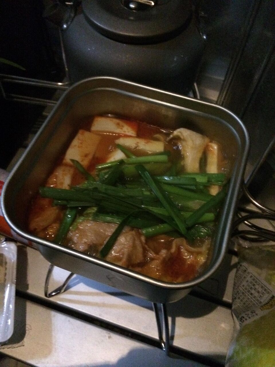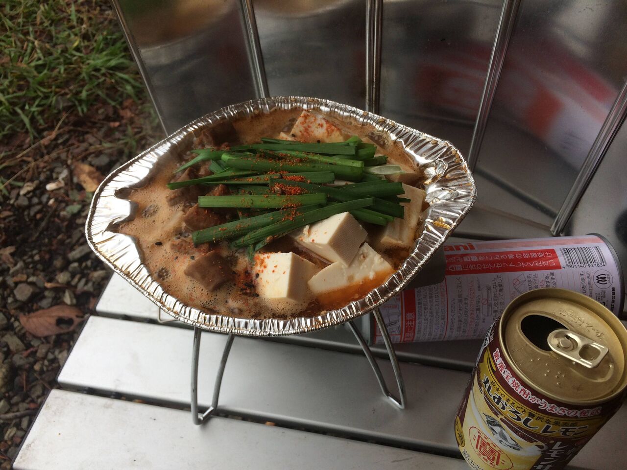 朝方は冷えると思ってホルモン鍋にしたんだけど割と気温が高いです
